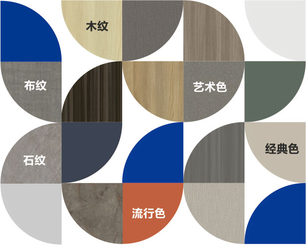 现拥有包含木纹、布纹、石纹、经典色、流行色、艺术色6大原创花色系列。每年推出近100款同步对纹全新花色,每一款花色都具有更高颜值和个性特征。每处细节的勾勒,无不传递出人与自然和谐相处的融合点,用工艺学习自然,用产品回归自然,还原自然深度。可以满足消费者不同的需求,为设计提供更多灵感和选择,带来颜值与品质兼备的家居体验。