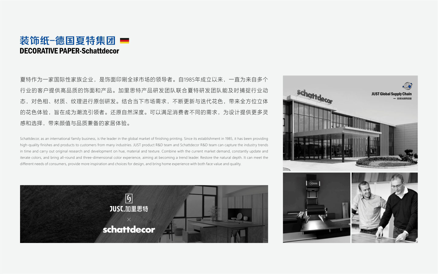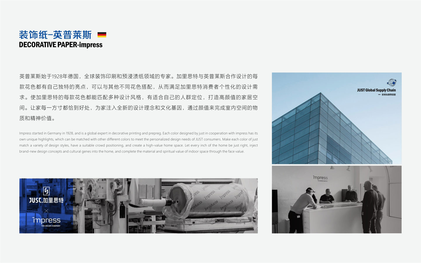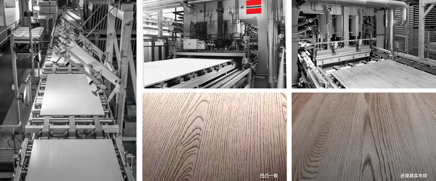 The cooperation between JUST and WEMHONER can be described as a strong combination. It is also the first enterprise in Southwest China to use fully intelligent and synchronous WEMHONER press for pressing plates. High tech performance and its fully automatic grain alignment technology, fast and accurate positioning, synchronous combination of dipping paper and steel plate texture. Develop synchronous embossing and deep embossing to ensure the best sticking quality of the plate and the artistic authenticity of wood grain. Restore the wood grain of elm, oak, maple, walnut, wax wood and ash to the wood grain veneer with relief technology, so as to make the visual texture effect consistent with the tactile relief effect. JUST's decorative panel perfectly combines high-quality substrate with trendy decorative paper to make deep products. With its superior performance, it redefines the high standard process, so that JUST occupies an important market position in the southwest area.
